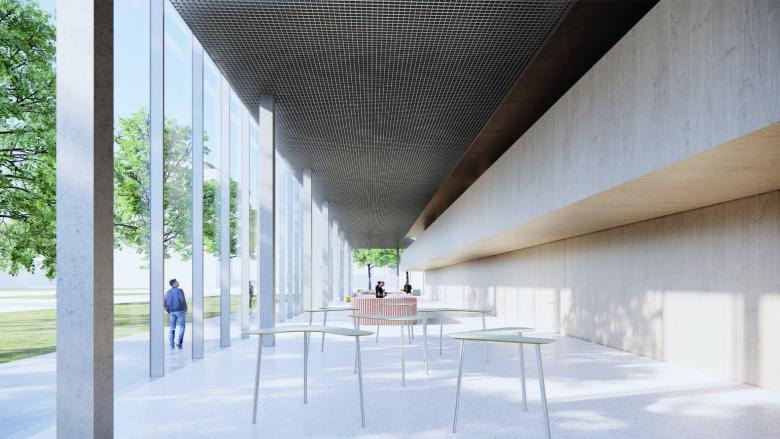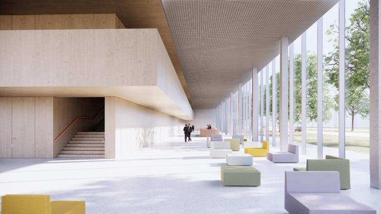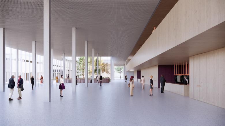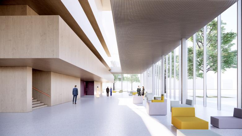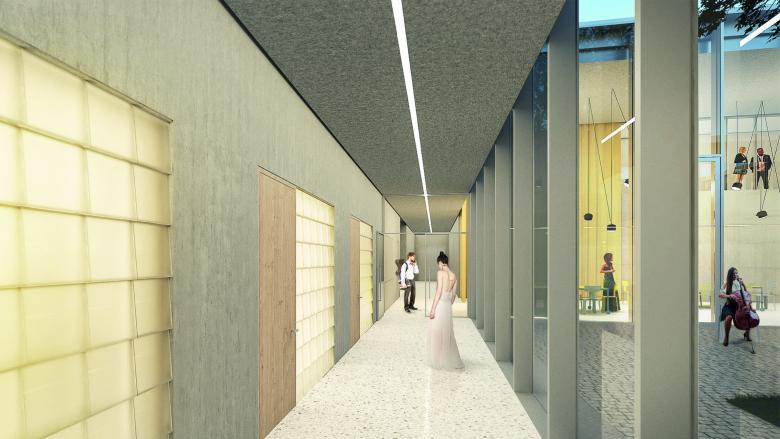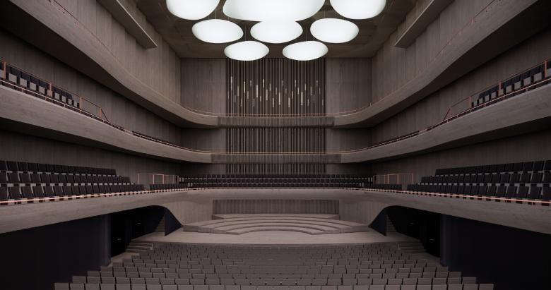 Das neue Konzerthaus wirkt offen und einladend. Alle wesentlichen Funktionen des Vorderhauses werden im Erdgeschoss angeordnet, hierdurch gewinnt der Verfasser für das neue Konzerthaus Lesbarkeit, Orientierung und letztlich auch Identität.