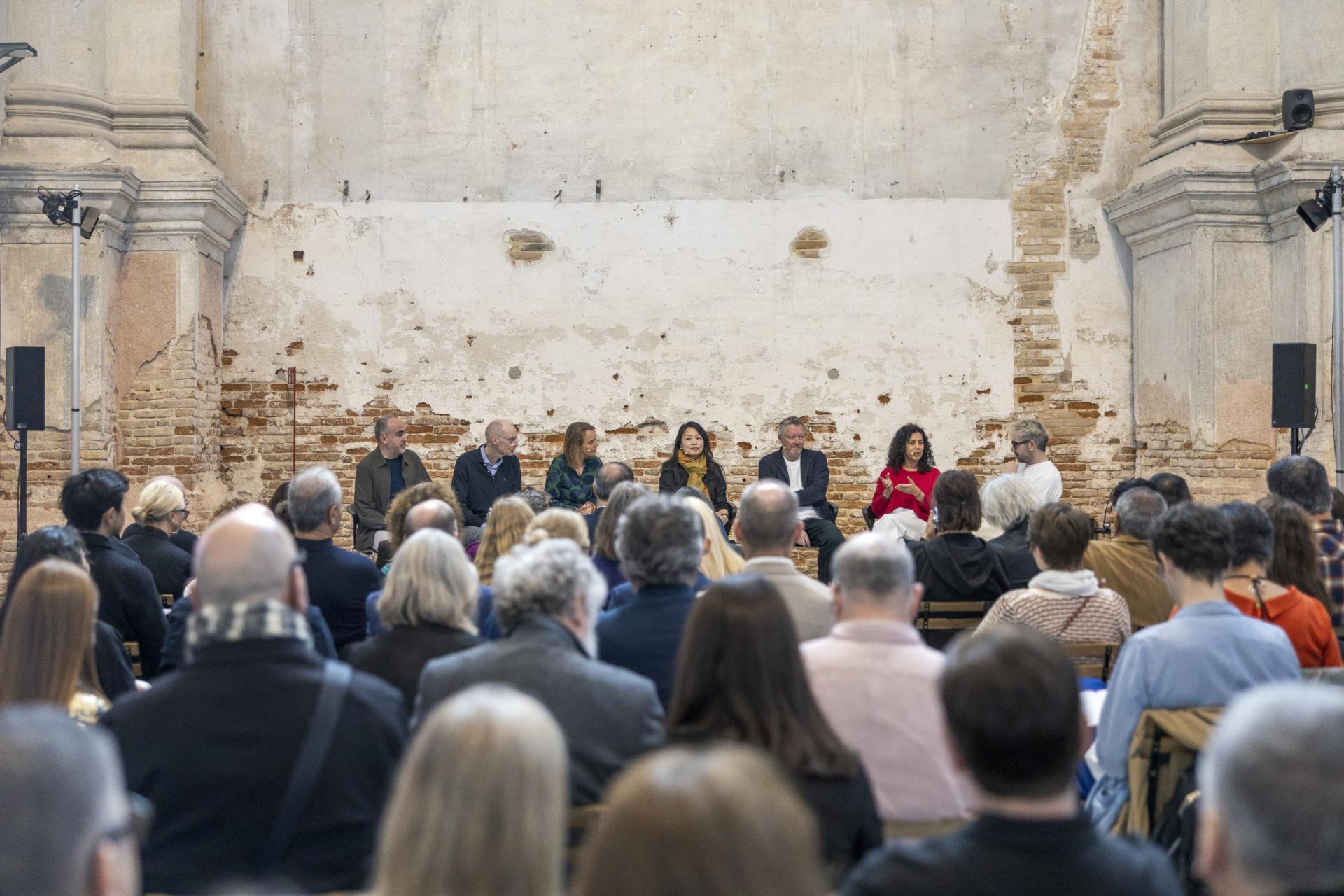 On the morning Friday, May 9, six foundations that give out architecture awards every one, two, or three years assembled a panel discussion at Ocean Space called “Beyond the Prize: How Architecture Awards Can Catalyse Meaningful Change.” The event included representatives from the Aga Khan, Ammodo, EUmies, Holcim Foundation, MCHAP, and OBEL awards, alongside architects who had won the awards and/or served as members of their juries: Anupama Kundoo, Rozana Montiel, Mohsen Mostafavi, Marina Tabassum, Kjetil Trædal Thorsen (Snøhetta), and Xu Tiantian.