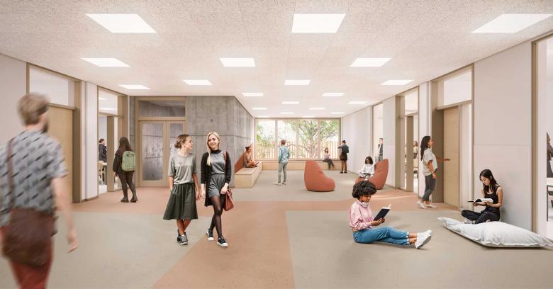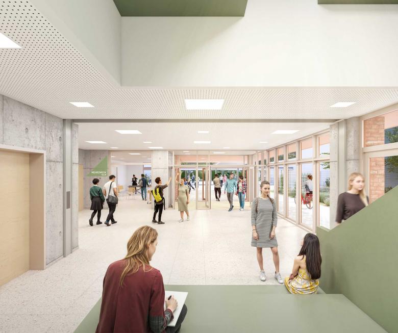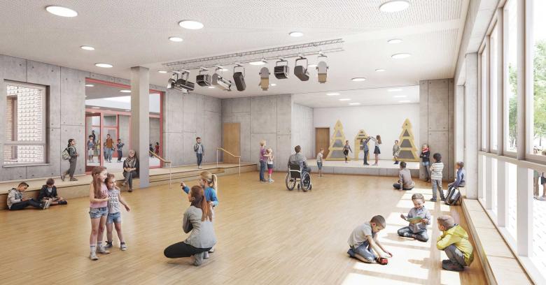 While the primary school sees itself as a protected learning and living space for the youngest children, the new extension to the Katharina Henoth Comprehensive School offers an open, urban learning environment for the 9th grade classes of the comprehensive school. The sports hall with two courts and the apartments for the caretaker's office complement the campus to create a sustainable school location. The result is a multifunctional educational location that facilitates exchange without sacrificing the independence of the schools.