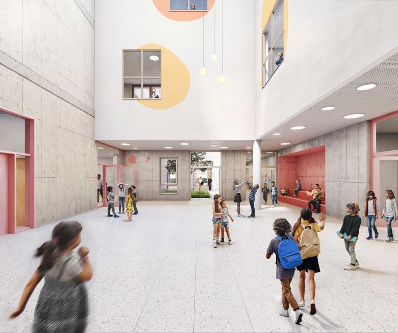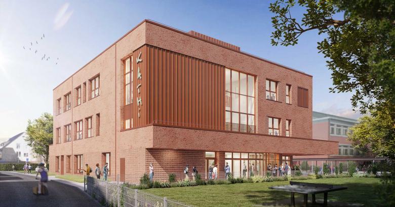 In Cologne-Höhenberg, a new educational location is being created that is more than the sum of its parts. With the new primary school building including a sports hall, a janitor's house and the extension of the comprehensive school, a campus is being created that is closely interlinked in terms of space and function and at the same time offers two independent addresses with recognition value.
