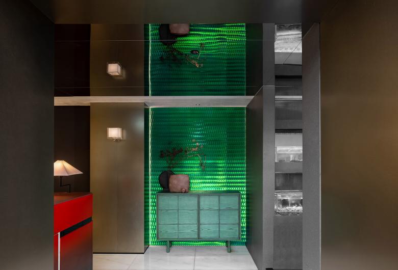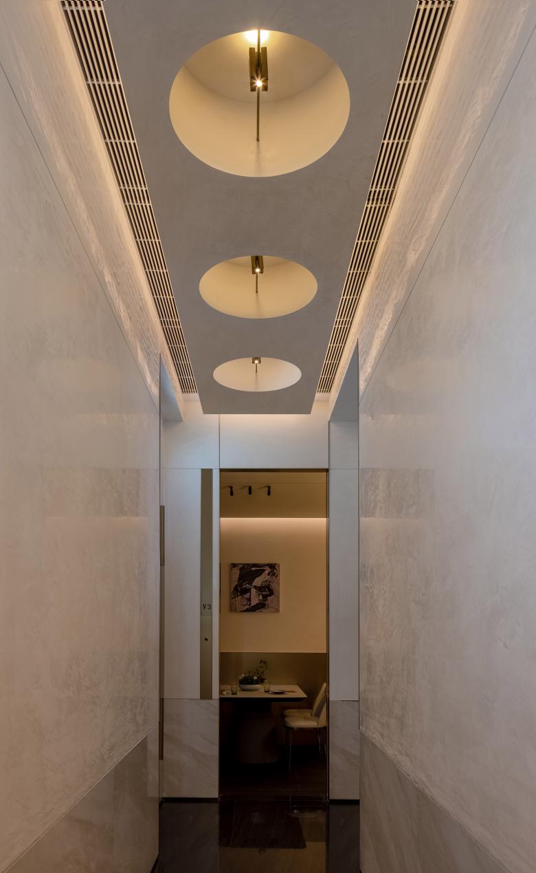 The passage’s enclosed layout posed a challenge, potentially leading to a sense of confinement. The designers addressed this by incorporating partial mirrored surfaces and recessed illuminated walls, significantly enhancing the overall sense of openness and comfort.