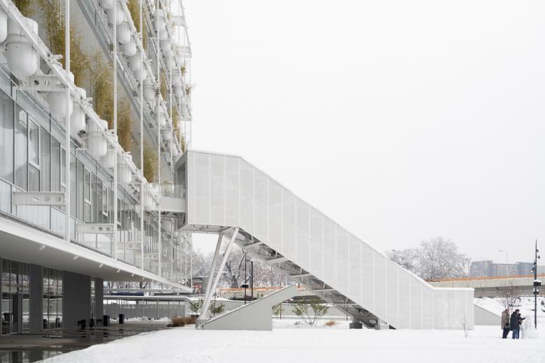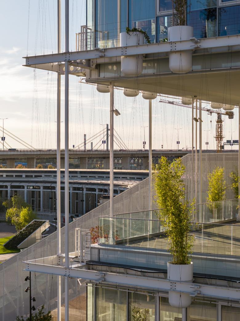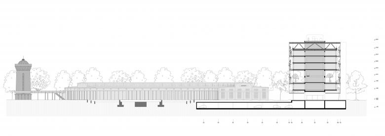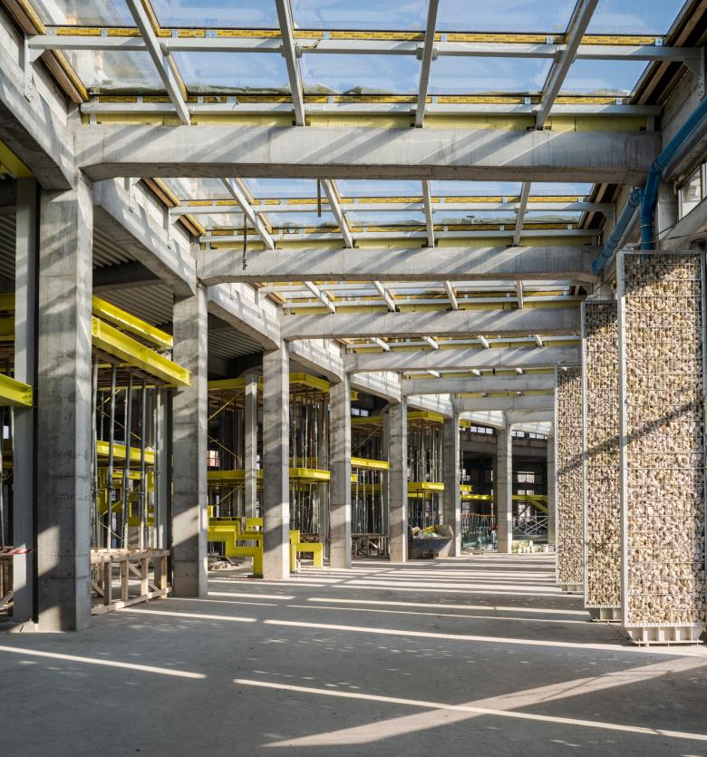 The site's incredibly rich history on one side and the creative and digital industries as future users on the other, along with its primarily public use and its location within a complex urban matrix, created a unique set of influences for us to respond to. The result was many experimental, custom-made, challenging solutions all in one project: 5m-high, 2t-heavy gabion panels, bamboo forest facade, levitating office building in steel, panoramic public terrace in the heart of the office building, open-air escalator, 3t-rotating steel table within the public space, 100-year-old preserved concrete structure intertwining carefully with the new steel gallery…
