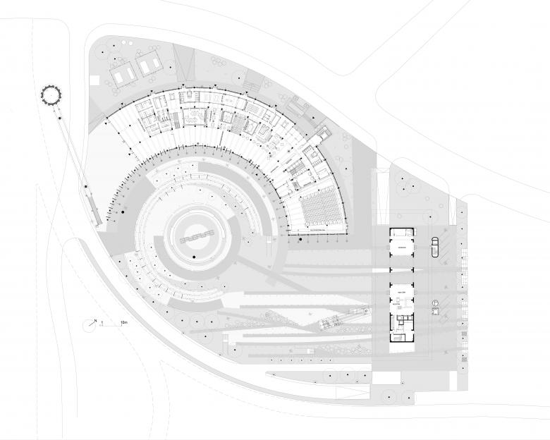 What were the circumstances of receiving this commission?Ložionica is the result of an open architectural competition announced by the Office for IT and eGovernment of the Republic of Serbia and the national platform Serbia Creates in 2021, for the revitalization and adaptive reuse of an abandoned historical site of Belgrade Railway located at the very heart of Belgrade, within the riverbank area undergoing rapid urbanization during the past decade. The competition brief asked for a new home for creative industries to meet under one roof—within the refurbished old railway depot, and the addition of one new office building for government offices and non-government organizations, start-ups, and small businesses relating to digitalization. The site was in complete ruin, with three historical jewels hidden within: Ložionica (an old railway depot), Turntable (a concrete ring in the centre for turning steam locomotives), and Watertower (for heating water for steam locomotives).