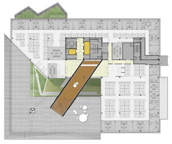 Green roof design was greatly simplified and deferred until later buildings of the master plan are implemented which will benefit from green the roof aesthetic.