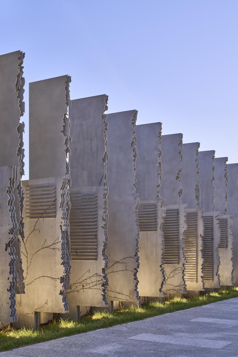 The design concept of the memorial site for the victims of the Augustów Roundup was inspired by the forest’s edge—both a site of execution and a place of refuge. Symbolically, it reflects the duality of hiding and revealing the truth. An integral part of the House of Remembrance of the Augustów Roundup is the Augustów Roundup Victims Memorial Wall. This installation, inscribed with the names of nearly 600 people murdered in 1945, serves as a symbolic tribute to the victims. For the authors of the design, it was important to connect the project to the specific place of its location, which is why they dedicated a significant amount of space to greenery, which is meant to grow between sculpturally crafted steel trees. This place is open to individual acts of remembrance, enabling families to place, for example, a flower or ribbon next to the name of a loved one.