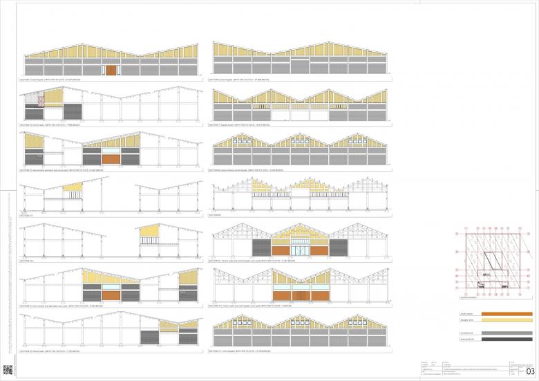 That’s a good question. I asked about the maximum span of the wood, which was six meters. The height could also be five to six meters, so that’s one unit. I need three units to get the right size. In total, that gives me 18 by 18 meters, which works out to 54 by 54 meters for the overall structure. I didn’t want to make it bigger or smaller because I needed a courtyard in the middle. If the structure were too small, a courtyard wouldn’t be possible.