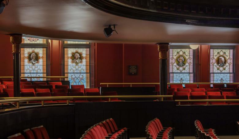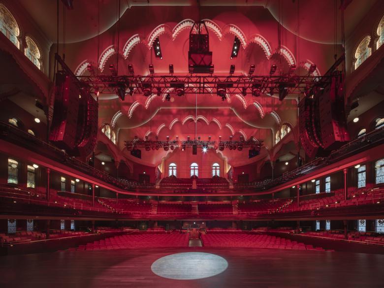 A major innovation lies in the integration of contemporary performance technology and infrastructure without compromising the heritage character. This includes modern theatrical lighting and audio-visual systems, acoustically tuned interiors, flexible automated seating that converts the orchestra level from traditional seating to standing room, and materials selected for their acoustic, visual, and tactile qualities.