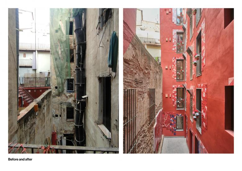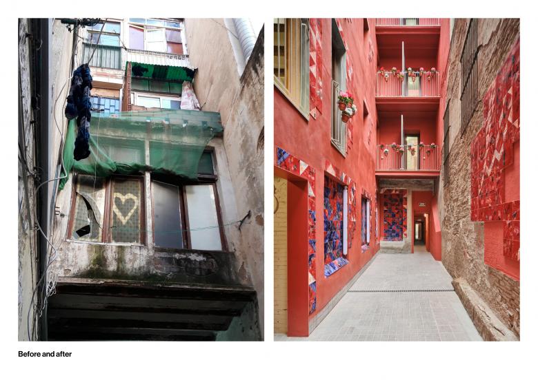In the Raval neighborhood, one of the most densely populated and culturally diverse areas of Barcelona's old town, MIAS Architects has carried out the comprehensive renovation of an existing residential building facing Calle Hospital. The project, promoted as social housing, aims to pay tribute to the memory and cultural roots of the neighborhood's inhabitants.