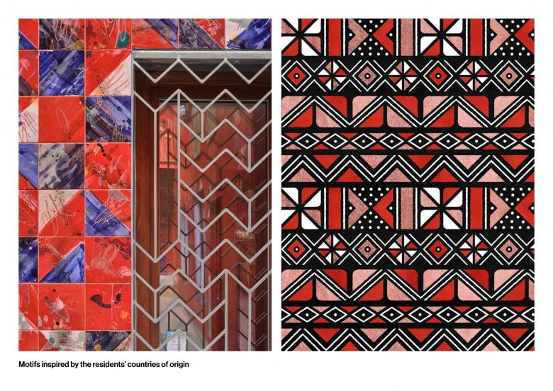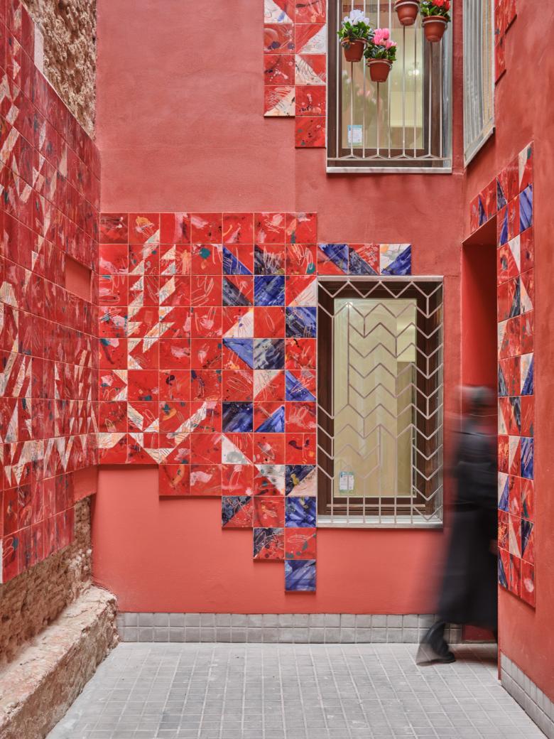 In the design, the courtyard acts as a backdrop reflecting elements related to the identity, cultural diversity, and everyday experiences of the residents who will return after the renovation. It encourages social interaction and a sense of belonging. References to fabrics, ceramics, tools, and food are used to evoke the collective memory of the community. Graphic motifs, patterns, and colors serve as means of cultural expression. These pieces, designed by architect and ceramicist Carlos Jiménez Cenamor (DelAmorYlaBelleza) incorporate patterns and geometries from the inhabitants' places of origin and display a variety of colors associated with cultural traditions.