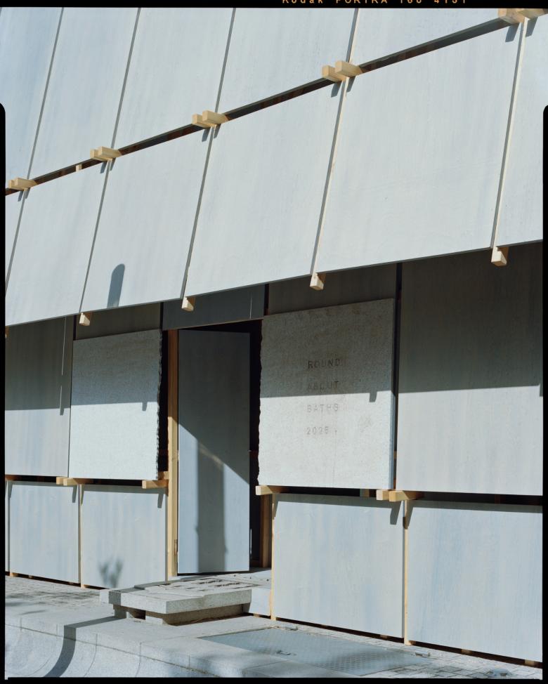 Round About Baths is a temporary public building transforming an impersonal and inaccessible fountain trapped at the center of relentless traffic into an intimate and communal experience where undressed bodies meet in water. Pride of 19th century’s social movements promoting public hygiene for the working class, urban public baths have slowly closed their doors to be unsurprisingly replaced by private and commercial “wellness centers,” mirrors of our times.