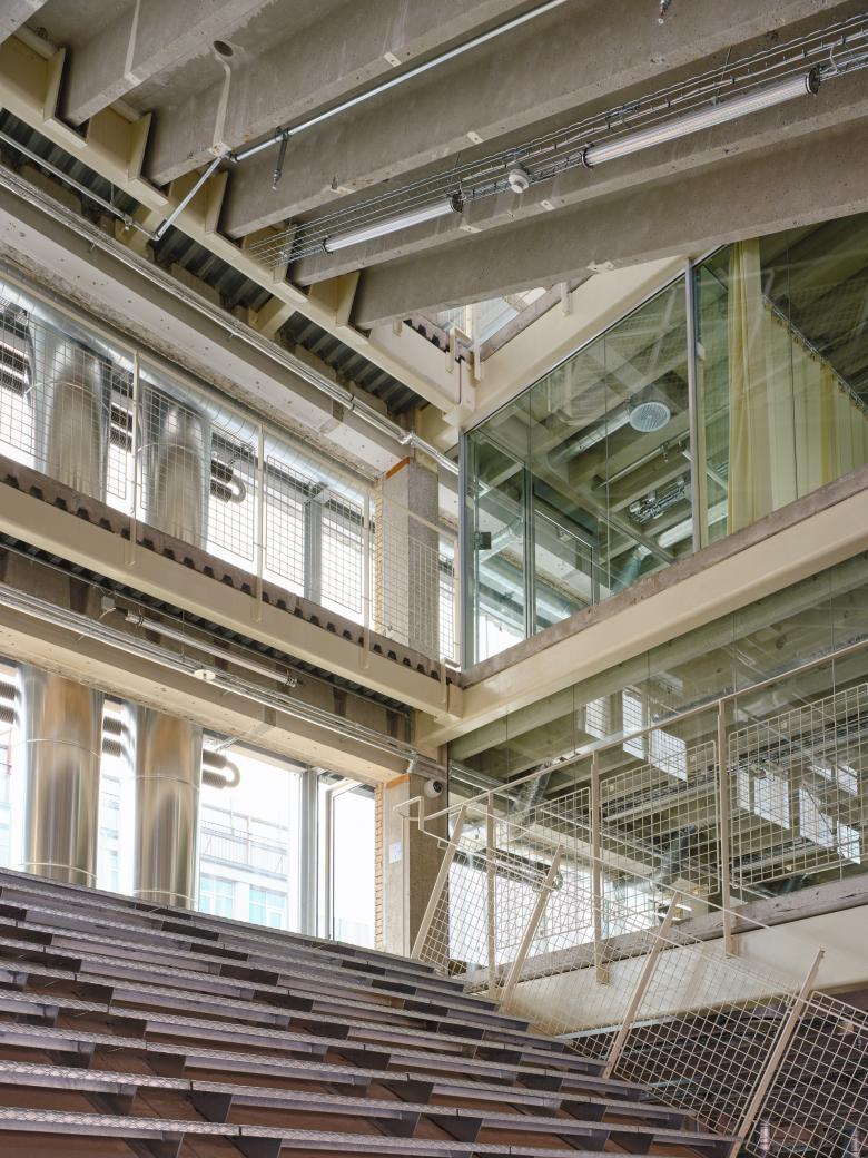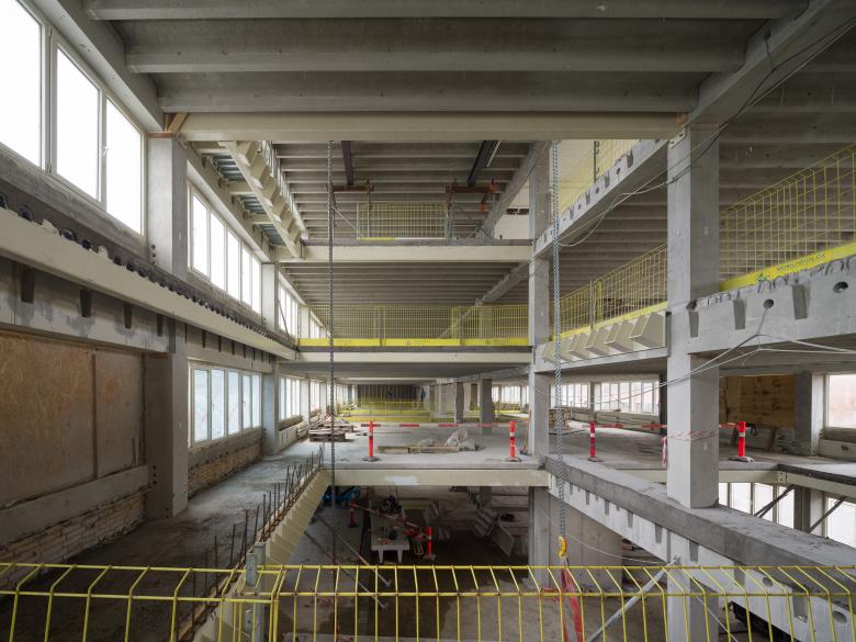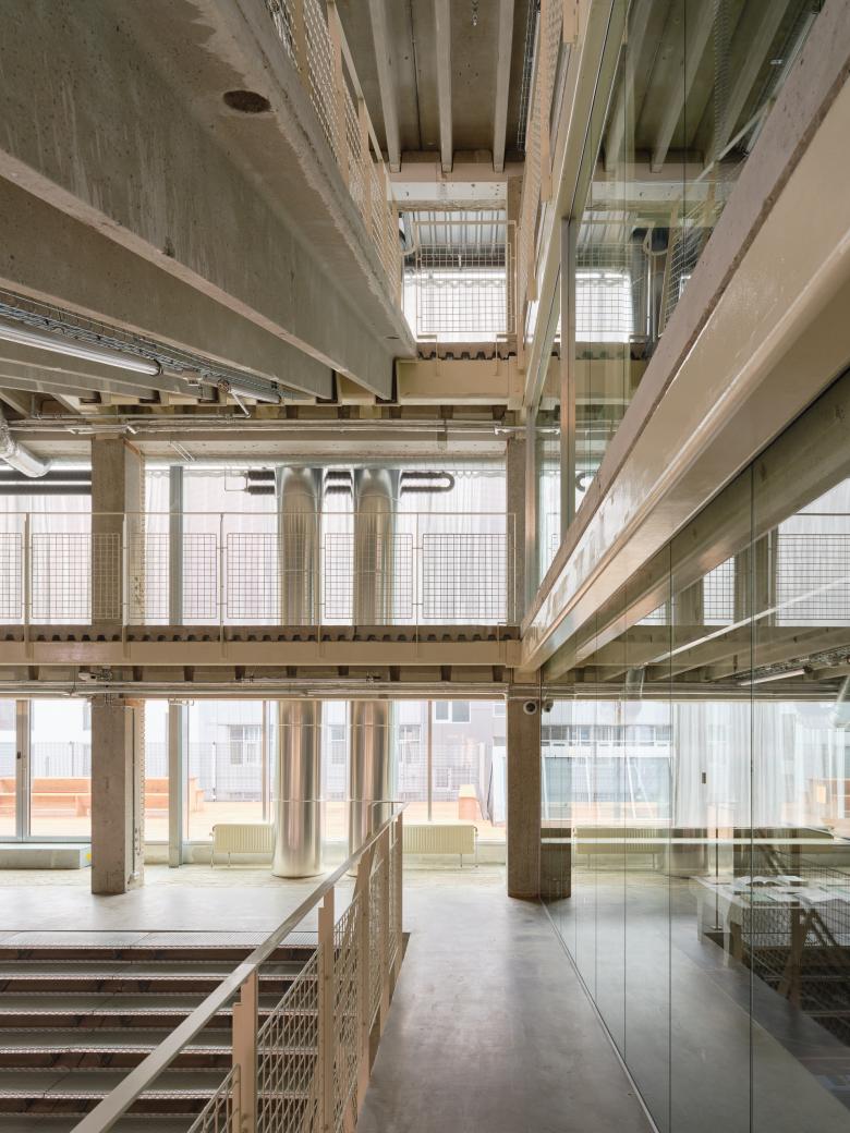 The transformation, turning a former factory from the 1960s into an open community hub, centers on the concept of self-recycling within the building. Each layer of the structure, even those traditionally deemed insignificant, is viewed as an asset. 95% of the existing was retained, repurposed according to its inherent qualities to meet new programmatic needs.