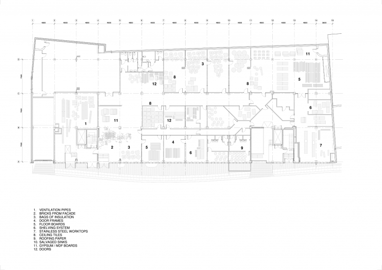 Slabs tilted into stairways, façades reorganized into pavement, doors morphed into furniture: utilize every possible element. The transformation highlights pragmatic reuse of materials and components and explores the architectural value of the already existing.