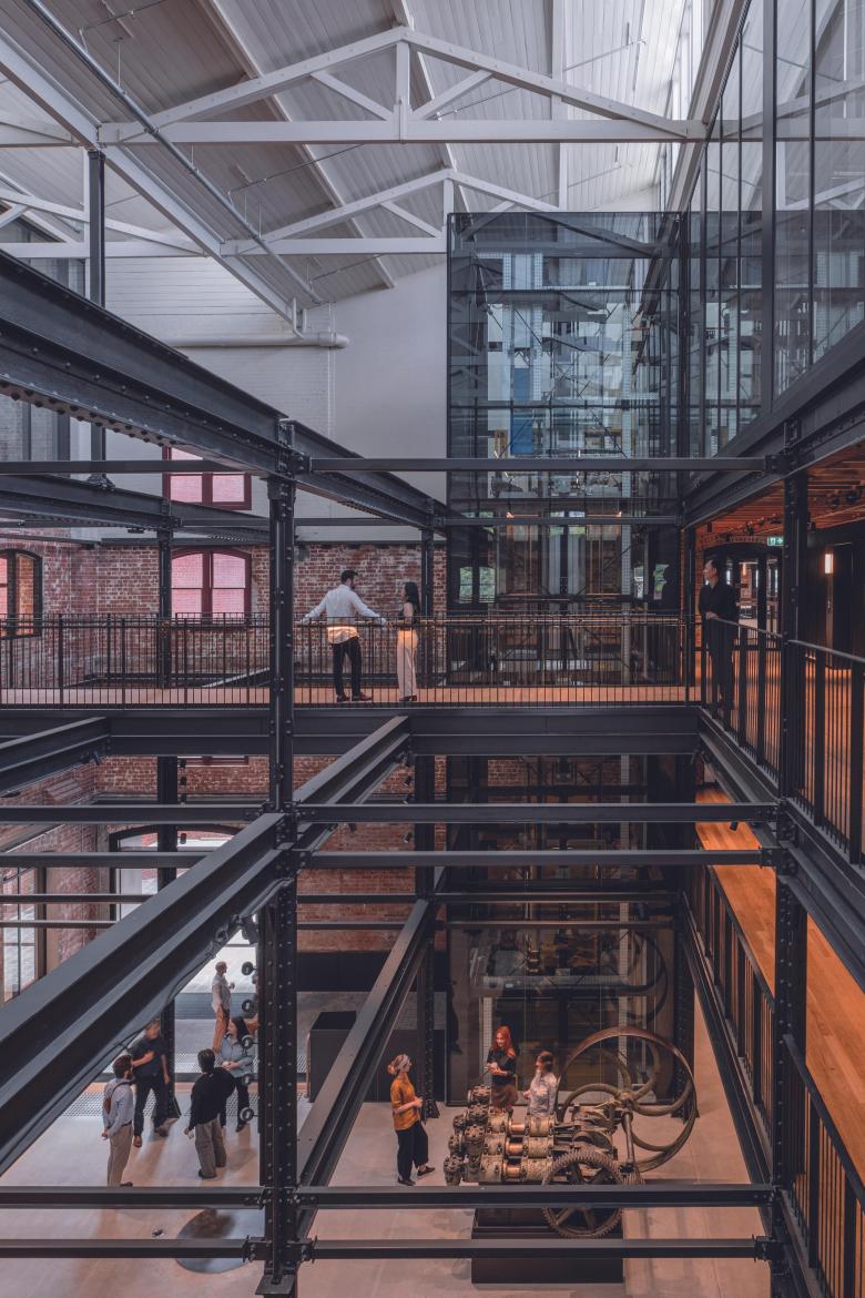 New insertions have been designed to feel contemporary yet complementary, so as not to detract from the rich heritage. These include modern glass lifts and external link bridges suspended over the bluestone laneway to improve access and add animation within the building. The original bluestone cobbles from the laneway have been individually removed, planed, and reinstalled to improve usability for wheelchairs, walking aids, prams, and bicycles.