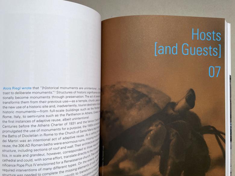 Much of the book's first third is given over to chapters addressing “immortality” and shifting theories over preservation and reuse, from Viollet-le-Duc and Alois Riegl centuries ago, to the Athens Charters and Venice Charter last century, and Rem Koolhaas and other voices this century. Then, in the seventh chapter, Wong brings up a term—host—that permeates the approaches and examples laid out in the remainder of the book. The term took this reader back to “The Object of Post-Criticsm” in The Anti-Aesthetic: Essays on Postmodern Culture (1983), in which the author, Gergory L. Ulmer, describes the host's guest as a parasite. One can see projects like Daniel Libeskind's Military History Museum in Dresden being parasitical, but Wong prefers the more benign term guest, and she elevates the importance of the host in adaptive reuse projects: “The purpose of this book,” she writes in this chapter, “lies in establishing the concept of the host structure as an entity and investigating the means by which alternations and interventions can be made in support of its independent existence.”