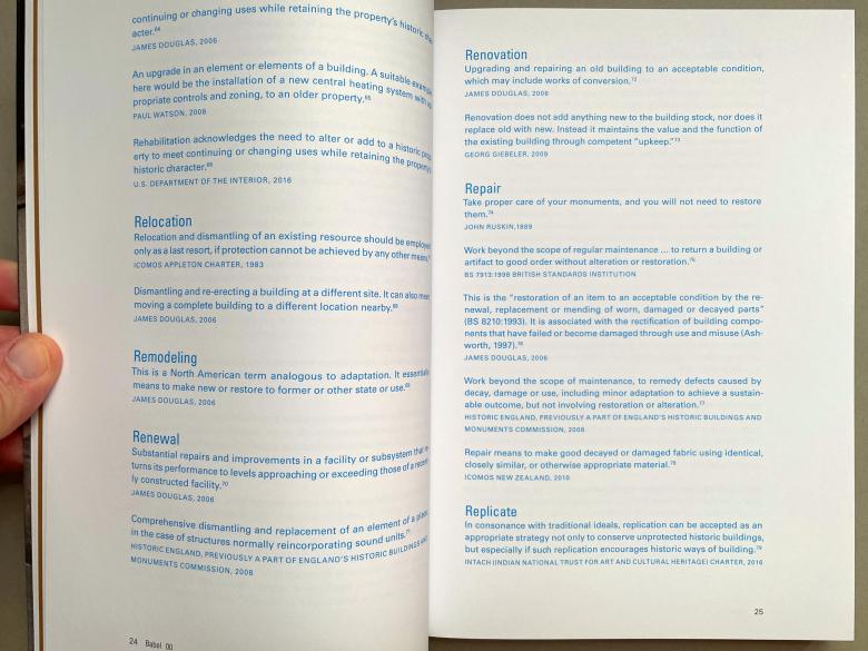A focus on history and theory presupposes language, which leads to terminology. Fittingly, Adaptive Reuse: Extending the Lives of Buildings begins with a zero chapter, “Babel,” that provides definitions of important terms for adaptive reuse, such as adaptation, conversion, maintenance, and repair. These are not dictionary definitions, mind you, but instead are quotes by important architects, authors, groups, and others spanning decades and in some cases centuries. Important here is the way these terms have shifted over time, influenced by trends and discoveries in architecture and historic preservation as much as in realms outside of these disciplines.