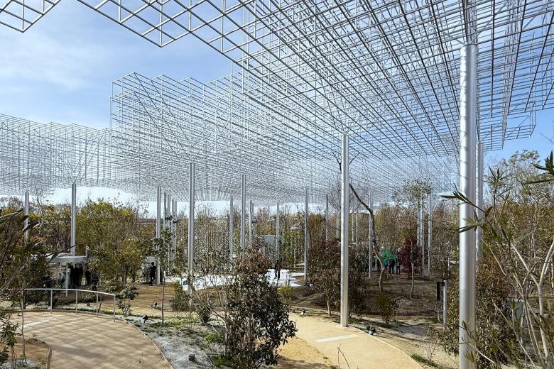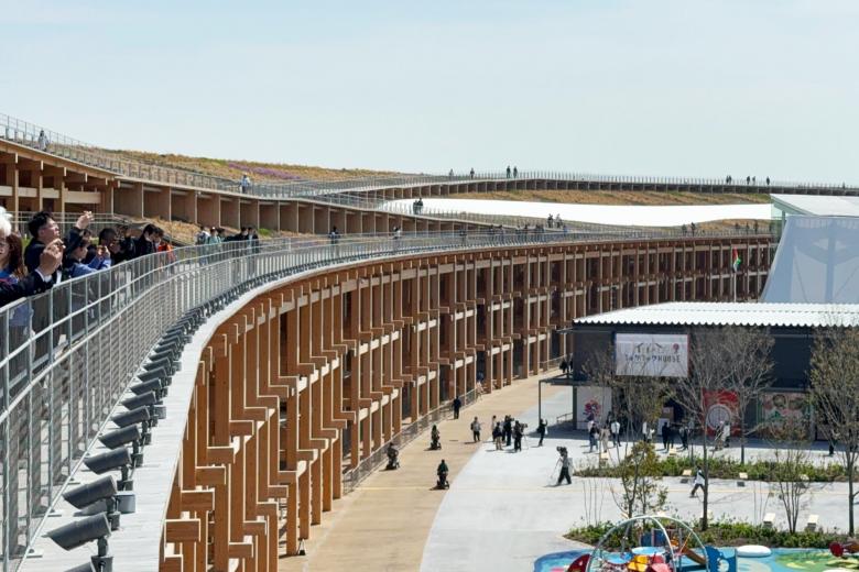 The signature pavilions sit in the middle of the Grand Ring by Sou Fujimoto Architects with Tohata Architects & Engineers and Azusa Sekkei. (Photo: Neoplus Sixten Inc.)