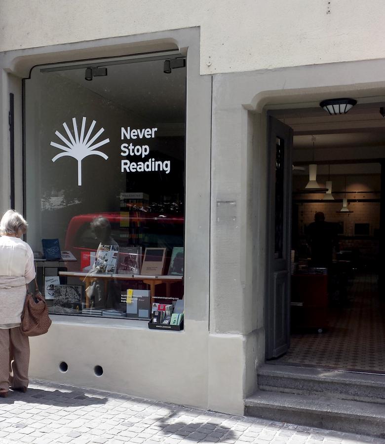 Just a two-minute walk from neumarkt 17 is one of the Old Town's newest shops, which opened in April. Owned by the publishers Scheidegger & Spiess and Park Books, Never Stop Reading features a "broad range" (not limited to the publishers' own titles, in other words) of books on architecture, photography, art, and design, as well as some general-interest English books. The new bookstore fills a void following the closure of the nearby Orell Füssli Krauthammer, and it provides an alternative to the overpriced Hochparterre architecture bookstore near Langstrasse. Once a butcher shop – and a Russian bookstore in the interim – Never Stop Reading exposes the history of the building, most evidently in the reading corner at the back of the store (below-right photo).