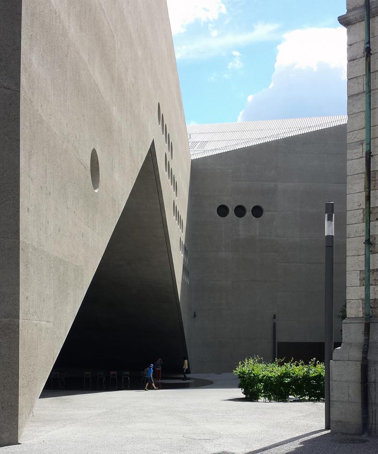 Just over a year ago Emanuel Christ and Christoph Gantenbein completed their extension of the Landesmuseum Zürich (Swiss National Museum), the second phase of a three-phase project that also includes the renovation and refurbishment of the museum's 1898 "chateau" designed by Gustav Gull. As Jenny Keller described it at the time: "The main element informing the design is the meandering ‘bridge’ that connects the rear wings of the old building and makes ‘old’ and ‘new’ into a self-contained entity." Entering the museum from the park on the north (as in the photo above) rather than from the plaza facing the main train station makes this relationship paramount. Although the museum doesn't allow photographs inside the extension, you can take my word that the new galleries, as well as the renovated spaces in the old building, are skillfully done with many surprises to encounter.