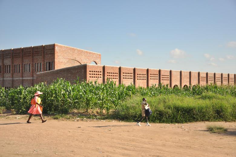 Hired by a former residential client who wanted to create a memorial to their late father, Sanjay Puri Architects designed the Nokha Village Community Centre as a building that integrates with its landscape to create additional usable space beyond its small enclosed footprint. These spaces include a sheltered courtyard and amphitheatre in the center of the building's swirling footprint, and a rooftop garden that ramps up from the plaza fronting the building. Furthermore, sun and climate impacted the building's form, with the courtyard oriented toward the north to provide shade, earth berms on three sides mitigating heat gain, and the grass roof also reducing heat gain.