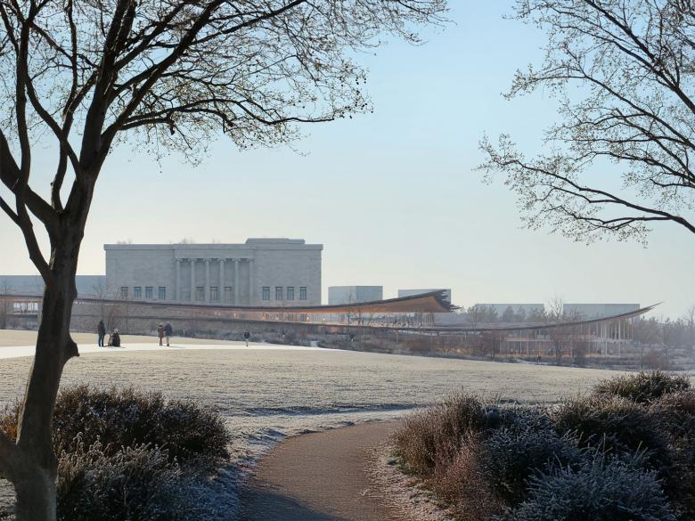 “Studio Gang’s design extends the edges of the Nelson-Atkins building with vibrant thresholds that merge the museum with the Sculpture Park and invite visitors into closer relationship with art and each other. Uniting inside and outside, the new architecture embodies the creative energy of connecting across differences.”