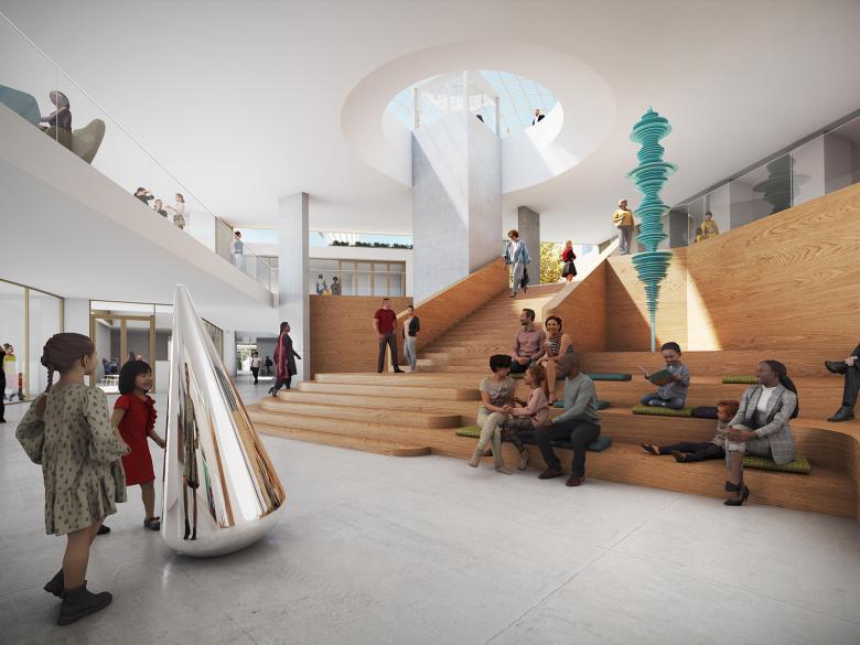 Welcome/Lobby looking west (Image © Studio Gang and Malcolm Reading Consultants)