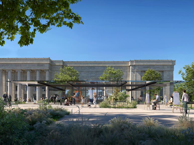 A new covered outdoor area and vantage point over the South Lawn (Image © Renzo Piano Building Workshop and Malcolm Reading Consultants)
