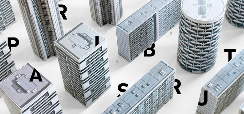 The series features buildings in Poland, where the studio is located, as well as London and Paris, all drawn by hand. The most recent creations are BRUTAL LONDON: Construct Your Own Concrete Capital, a book released this month, and Blokoshka, four nesting blocks "inspired by the former Eastern Bloc concrete modernist estates" of Moscow, East Berlin, Warsaw and Prague. As in the others, the buyer is responsible for assembling these colorful buildings, but no glue is required – only patience.