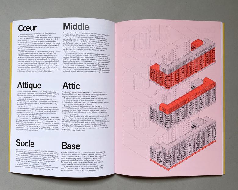 Based in Paris, h2o architectes was founded in 2005 by Charlotte and Jean-Jacques Hubert, and the pair was joined by Antoine Santiard as a partner in 2008. The firm's portfolio includes the restoration of numerous heritage buildings, carried out under Eugène Architectes du Patrimoine, with other projects ranging from public spaces and schools to housing and museums. Their diverse portfolio is reflected in the series of slim, bilingual (French/English) monographs the firm has been producing with Building Books, a publisher also based in Paris, since 2020. Two books that year—Building with Limestone in Paris and Place-making at the Madeleine—were followed by two more books last year, the latter of which are presented below.