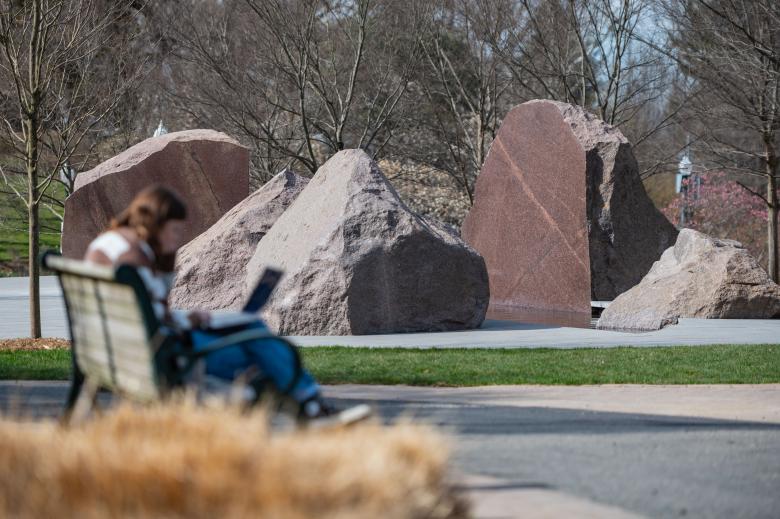 Similar to the original, which NGS employees and their visitors would walk around to access the buildings, AU students approach and walk around Sudama from different directions, such that the relationship between the boulders is always shifting. (Photo: Dylan Singleton)