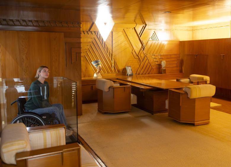 Frank Lloyd Wright’s 1930s Kaufmann Office at V&A East Storehouse – the only Frank Lloyd Wright interior outside the USA. (Photo: Kemka Ajoku for V&A)