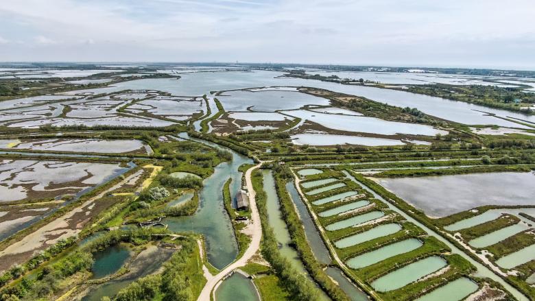 A book about indigenous water practices would be incomplete without a trip to the Venetian Lagoon. Watson does just that with the Valli da Pesca Dikes, Ponds, and Canals of the Venetians (below), which date back to the 11th century. Yet another case study in cultivating and harvesting fish in brackish waters, the scale of the valli system is impressive: 100 square kilometers, or 20% of the lagoon's surface. While the diversity of the fish reared in the canals, embankments, reed beds, and ponds has been reduced to just a few, the valli's embankments serve many supportive roles today, including filtering and purifying water, retaining sediment, absorbing carbon, and reducing wave impact.