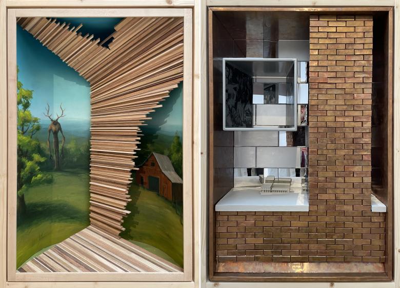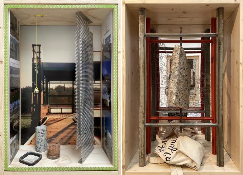 In addition to its attention-getting canopy designed by Marlon Blackwell Architects, the US Pavilion at this year's Venice Architecture Biennale features 54 contributions from American architects addressing the theme PORCH: An Architecture of Generosity. World-Architects took photos of some of the so-called “Porch Windows” on display inside the pavilion and presents them here.