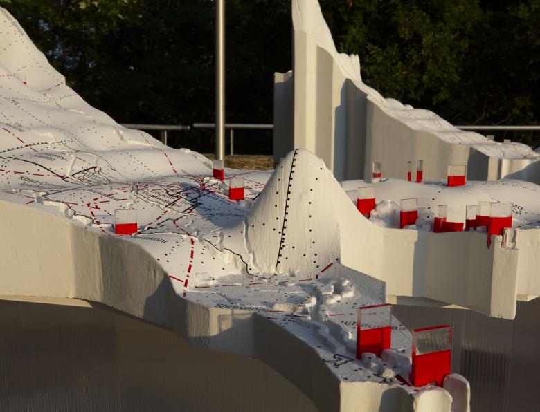 Tracing Our Mississippi represents the Mississippi River watershed through four models, each one of a different river basin (including the Ohio River, which connects Columbus to the Mississippi). The models highlight the many pieces of infrastructure "controlling the Mississippi’s landscapes, communities, and resources."