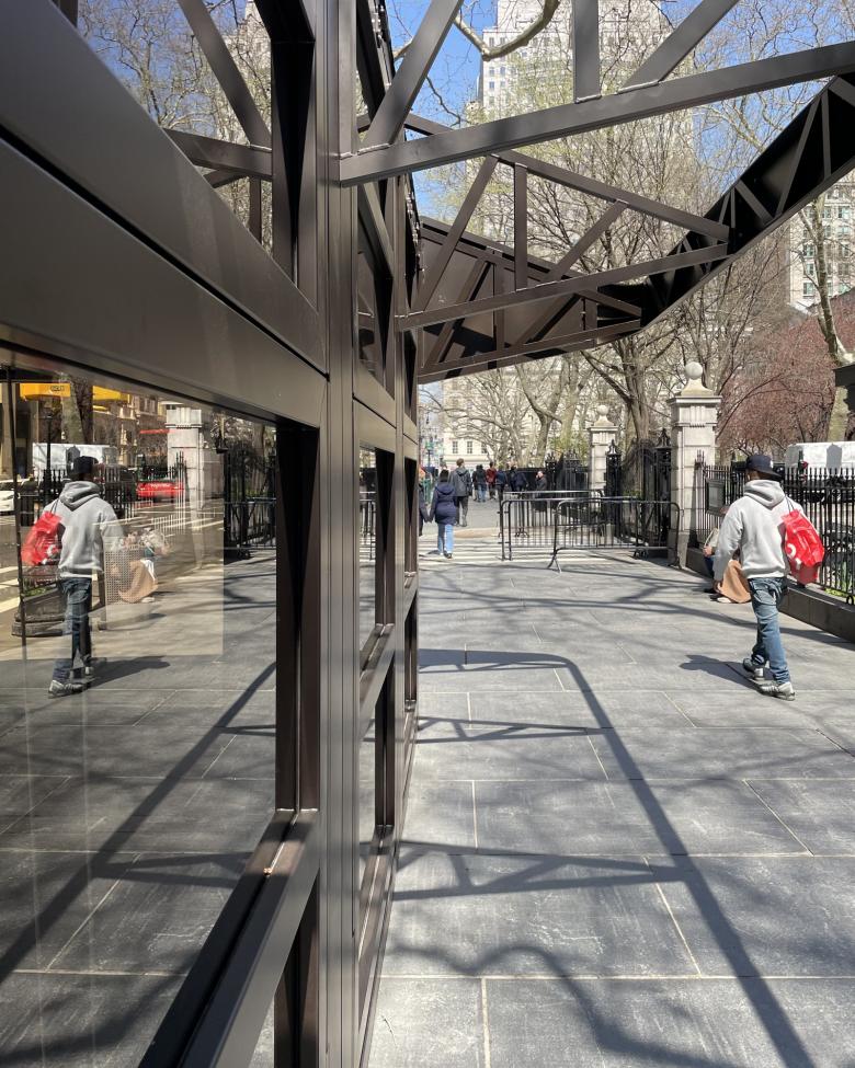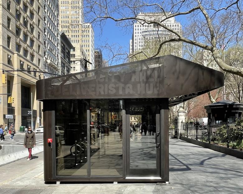 According to the office of Mayor Zohran Mamdani, there are approximately 80,000 app-based delivery workers across New York City. Most of them ride e-bikes, which are expensive, require maintenance and charging, and are increasingly regulated due to their growing numbers and safety concerns over battery fires. Providing places for delivery workers to safely charge batteries, repair their bikes, take shelter from the elements, and otherwise rest is a no-brainer, but it took 3-½ years from the announcement of a federal grant from Senator Chuck Schumer in October 2022 to the structure's unveiling last week. When Mamdani took office on the first day of 2026, the Deliverista Hub became one of his many priorities, and with the help of the many city agencies and other players who have been involved with the project over its duration—most notably the Worker's Justice Project's Los Deliveristas Unidos, which organizes and advocates for app-based delivery workers in New York City—the City Hall Park Deliverista Hub was fast-tracked and unveiled on April 7, a few days shy of Mamdani's 100th day in office.