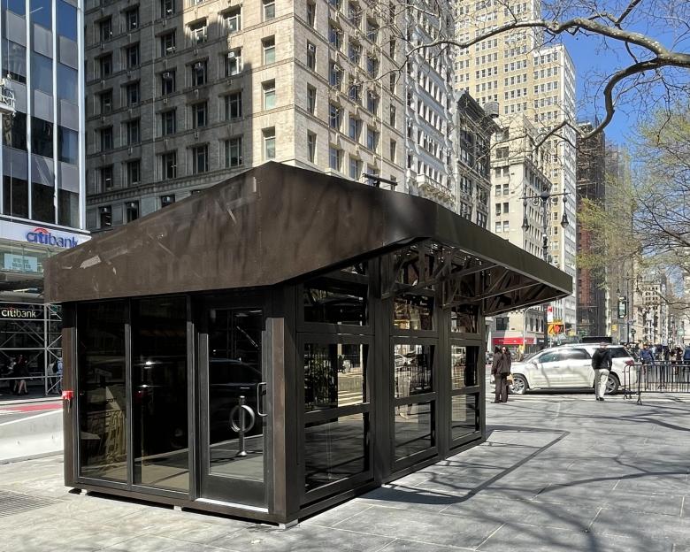 Integral to the functioning of the City Hall Park Deliverista Hub is its siting on the footprint of an unused newsstand, a prefab structure that was meant to look old but was not landmark protected. With the old newsstand removed, the site offered a power hookup and a concessions agreement—but not a water hookup, meaning a much-needed restroom would have to be added in the future. Manman described the project like a “gas station for micromobility,” one that would be staffed like a gas station. So, in addition to offering a place to charge batteries, workers can “get out of the elements, find a friendly face, and get a free bike tune-up.” Like the modular parklets, bike pods, and outdoor dining shelters, Deliverista Hub was designed to be replicable. “We designed it as a modular prefab system that has an extraordinary amount of customization power,” he said, “which was tested by a two year long process of permitting and approvals.” Those approvals will make wider implementation easier, but just as important will be the Worker's Justice Project, which is willing to take on their operation and maintenance and could partner with companies, like OONEE, so the city does not need to take it all on themselves.