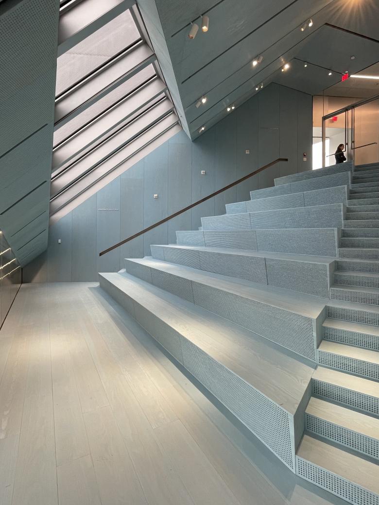 While many people during the press preview were drawn upstairs by the large-scale artwork in the middle of the stairs, the alternative approach of taking an elevator to the top and walking down—akin to Frank Lloyd Wright's Guggenheim—was a great way to experience the new New Museum. (Photo: John Hill/World-Architects)