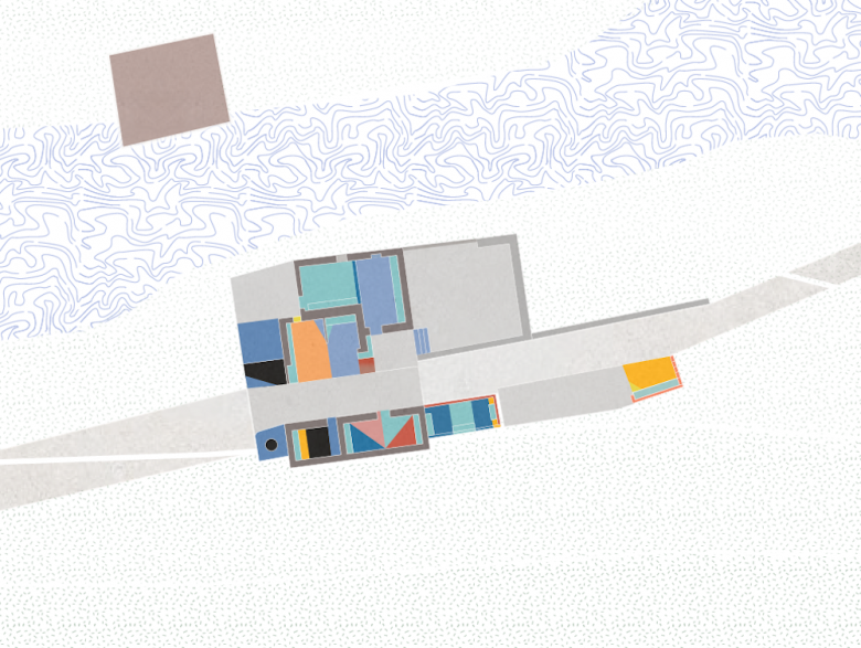The plan of the ruin indicates the color of the walls, given that the concrete slabs were not painted.