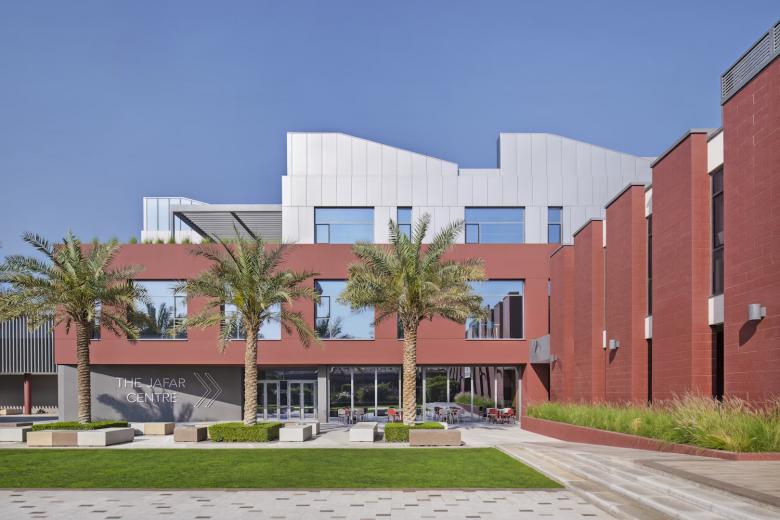 From social to the sustainable, the Godwin Austen Johnson designed Jafar Centre at Dubai College successfully replaced underused space in the Al Sufouh area of the city with its compact vertical building. Delivered with minimal disruption, the building prioritizes daylight, acoustics, thermal comfort, and sustainability, aiming for LEED Gold certification.