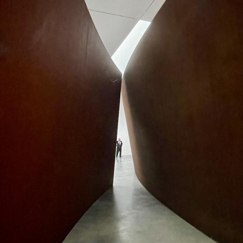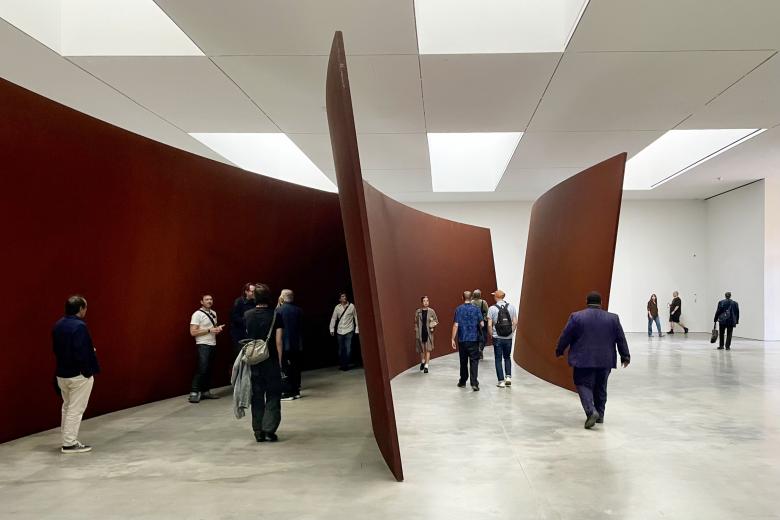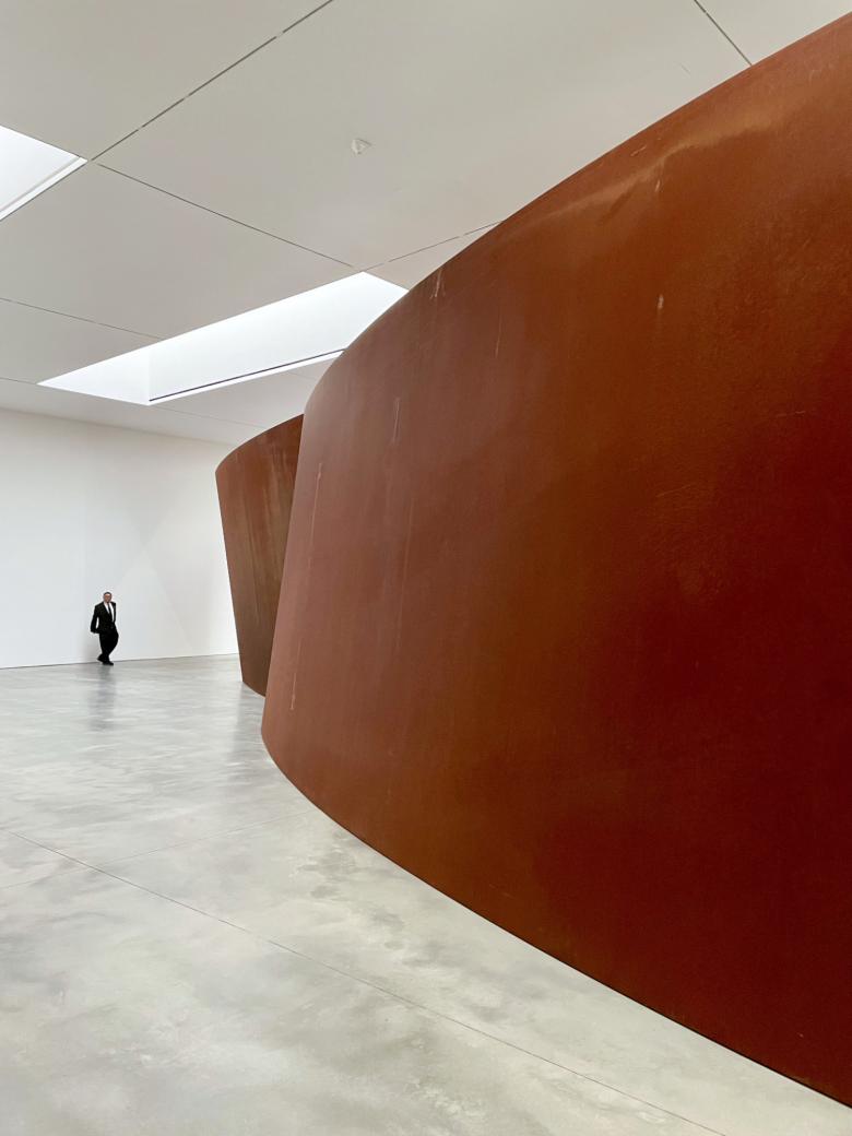 Walking around the gallery to experience the sculpture is important, but one rarely does that alone. Experiencing Running Arcs (For John Cage) and other Serra works accentuates what Rosalind Krauss calls “the mutual transitivity of seer and seen”—and seeing people experience a Serra piece is as joyful as walking through it.
