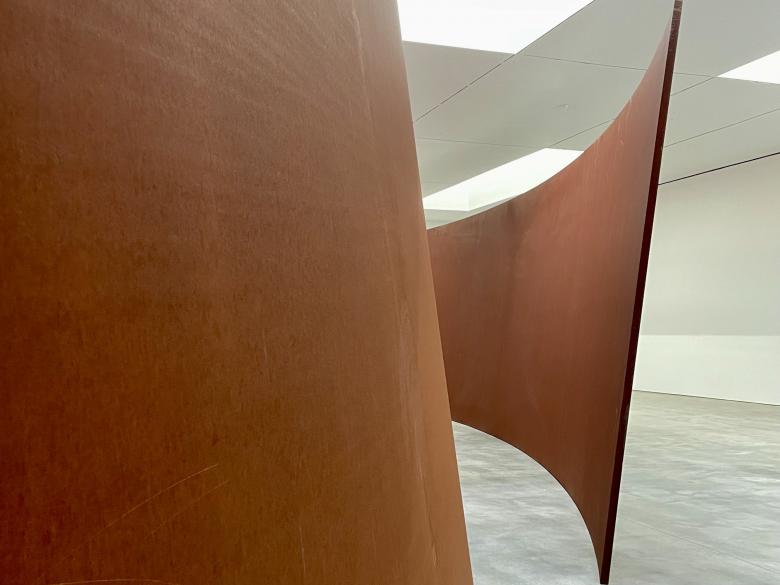 Richard Serra had been installing single-curve walls of weathering steel since the 1980s, most of them for outdoor spaces. Starting with Clara-Clara (1983) and continuing with such pieces as Berlin Junction (1986/87), Serra worked with two curves together, making the spaces between them as important as the objects themselves.