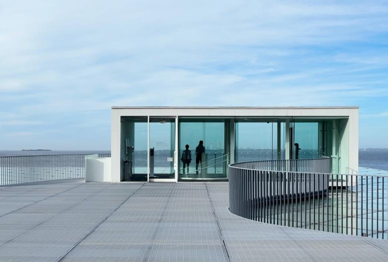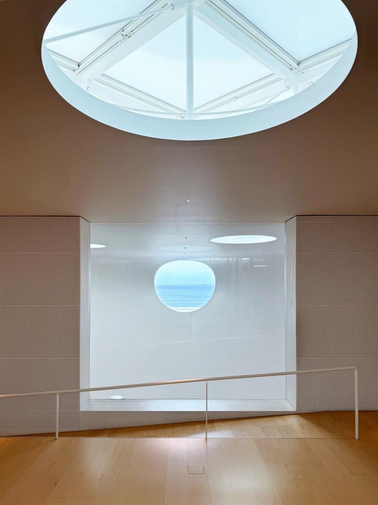 After the exhibition, visitors can ascend to the rooftop for views of the sea, which can also be glimpsed from upper floors of the museum.