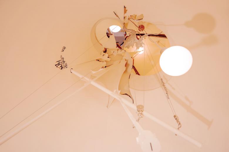 The chandelier and sculptural piece inserted into the light shaft recalls Baroque or Rococo churches, though Pennell's sounds more like the Psychedelic Sixties: “The Polycolonic-Garbage-Disposal-of-Eternal-Bliss-and-Karmic-Unity.”