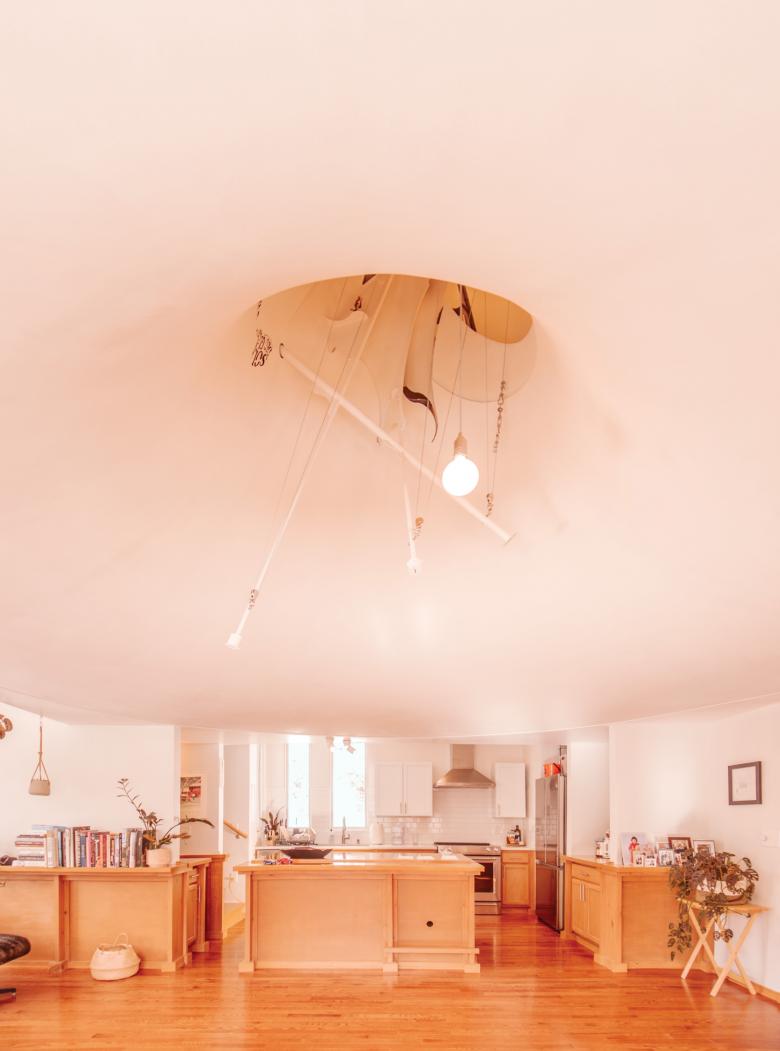 As we'll see, the skylight is one of the keys to the house's interior arrangement. Looking like the Astrodome of an old bomber plane, the skylight is one many custom pieces in the house fabricated by Pennell.