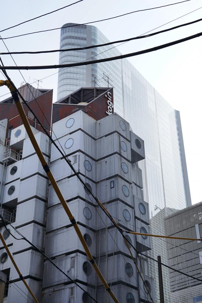 One such building is the 48-story Dentsu Tower designed by Ateliers Jean Nouvel and completed in 2002, seen here beyond Nakagin. (Photo: Ryogo Utatsu/Neoplus Sixten Inc.)