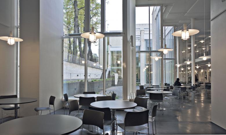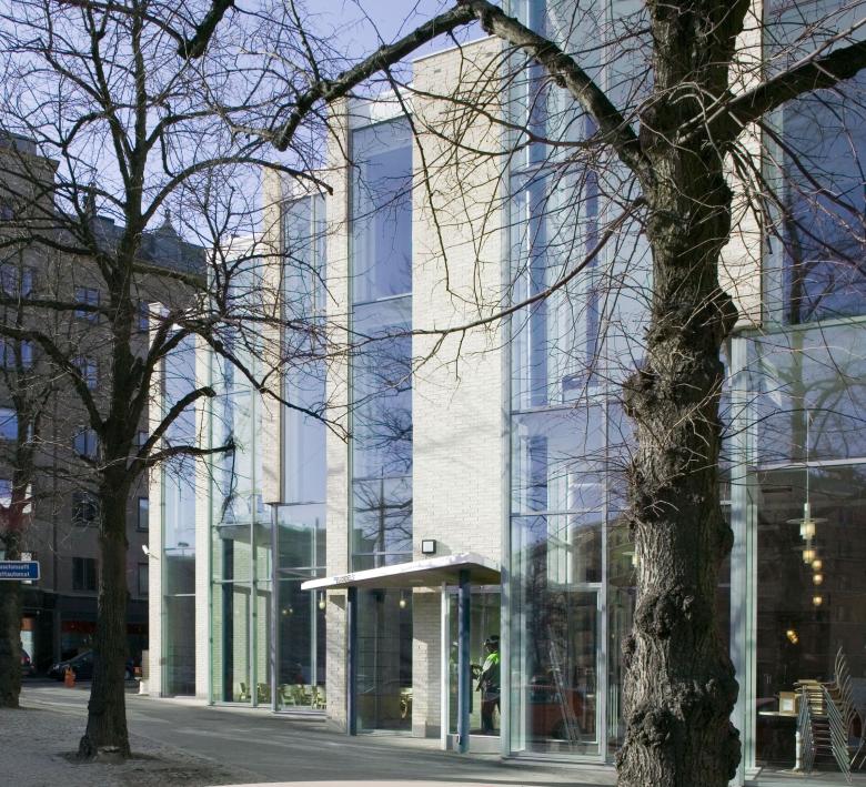 Although Leiviskä is known for religious projects, many of the 21 works in Juha Leiviskä 2000–2022 are in other typologies, among them cultural, educational, residential (both houses and housing), and offices. The Sandels Cultural Centre is an example of the architect applying his approach to a mixed-use, cultural/educational building. The site facing Helsinki's Töölöntori square suggested a building “completing the rectangle with its plain vertical facade,” Leiviskä writes in the monograph, but he instead proposed a solution with “a stepped form” and “glass prisms [establishing] a lively endpoint to Töölöntori square.” The solution is distinctive to the architect but particular to the project's program (classrooms, music facilities, cafe, etc.) and its site.
