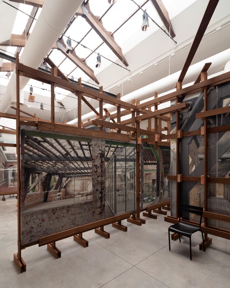 The project's display, Useless Ever People: Caritas for Freespace, consists of large photos by Filip Dujardin that depict interventions mounted on a wooden structure. The display was particularly memorable following the preview last week due to the tectonics of the armature and the way it creates a series of small spaces aligned with the project it depicts, but as much for the pleasant smell of the wood. But the effect was not intentional: as the architects told me, the oil for the required fireproofing of the wood emitted the odor. The distinctive aroma should subside over the six-month course of the Biennale – all the more reason to visit sooner rather than later.