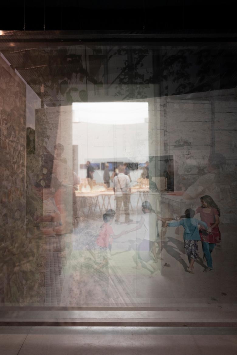A special mention was also given to Indian architect Rahul Mehrotra and RMA Architects for Soft Threshholds: three projects that express RMA’s drive to "create spaces of inclusiveness, exchange and empathy situated in the diverse landscape of India," as they describe it in the catalog. Large-scale photos on scrims present the projects as layered images that capably capture the atmosphere of the permeable, easily traversed "soft threshholds."