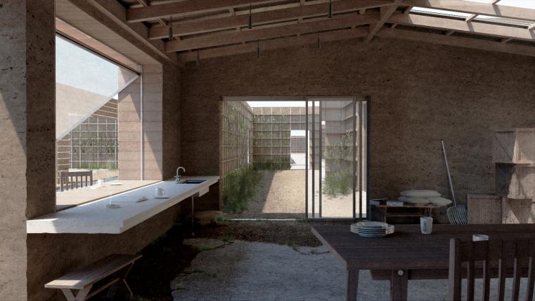 Lastly, one student honorable mention was selected from the 36 students projects nominated by 18 European schools of architecture from Graz, Spittal, Vienna, Banja Luka, Sarajevo, Zagreb, Thessaloniki, Budapest, Pescara, Trieste, Podgorica, Bratislava, Ljubljana, Maribor, Belgrade, Kragujevac, Novi Sad and AA London. The jury selected the project Across the Wall, designed by Architectural Association London student Tetsuya Saito under Lawrence Barth and Lucy Styles. The jury selected the project because of its "subtle way of inhabiting an abandoned territory of a former mine. Project brings a housing that does not have urban characteristic to the countryside combining with agricultural production."