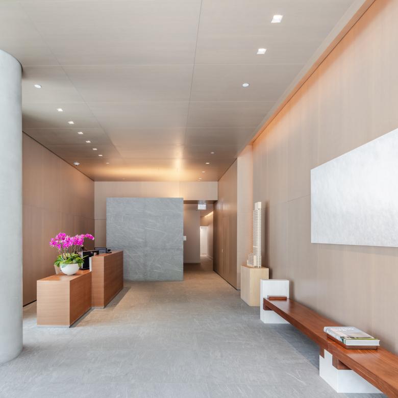 Interiors of the 77 luxury condos were designed by New York's Gabellini Sheppard. The unit sizes range from one to four bedrooms, with the tower floors featuring just two units per floor, meaning all units in the tower have one or two corners. Siza said, per the development website: "Corner windows were also important. There’s a rhythm to it — from here, you can see the Hudson River; from there, you can see Central Park."