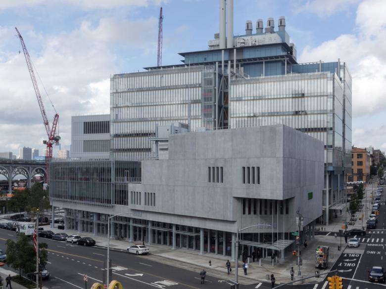 Actually The Forum is the third building, period, on Columbia's Manhattanville campus, following Piano's Jerome L. Greene Science Center and Lenfest Center for the Arts, both of which opened last year. Piano likes to discuss the three buildings as integral to the humanities: science, art, and community. Greene houses Columbia's neuroscience institute, Lenfest has spaces for performance and exhibition, and now The Forum is set to host academic conferences and other events.